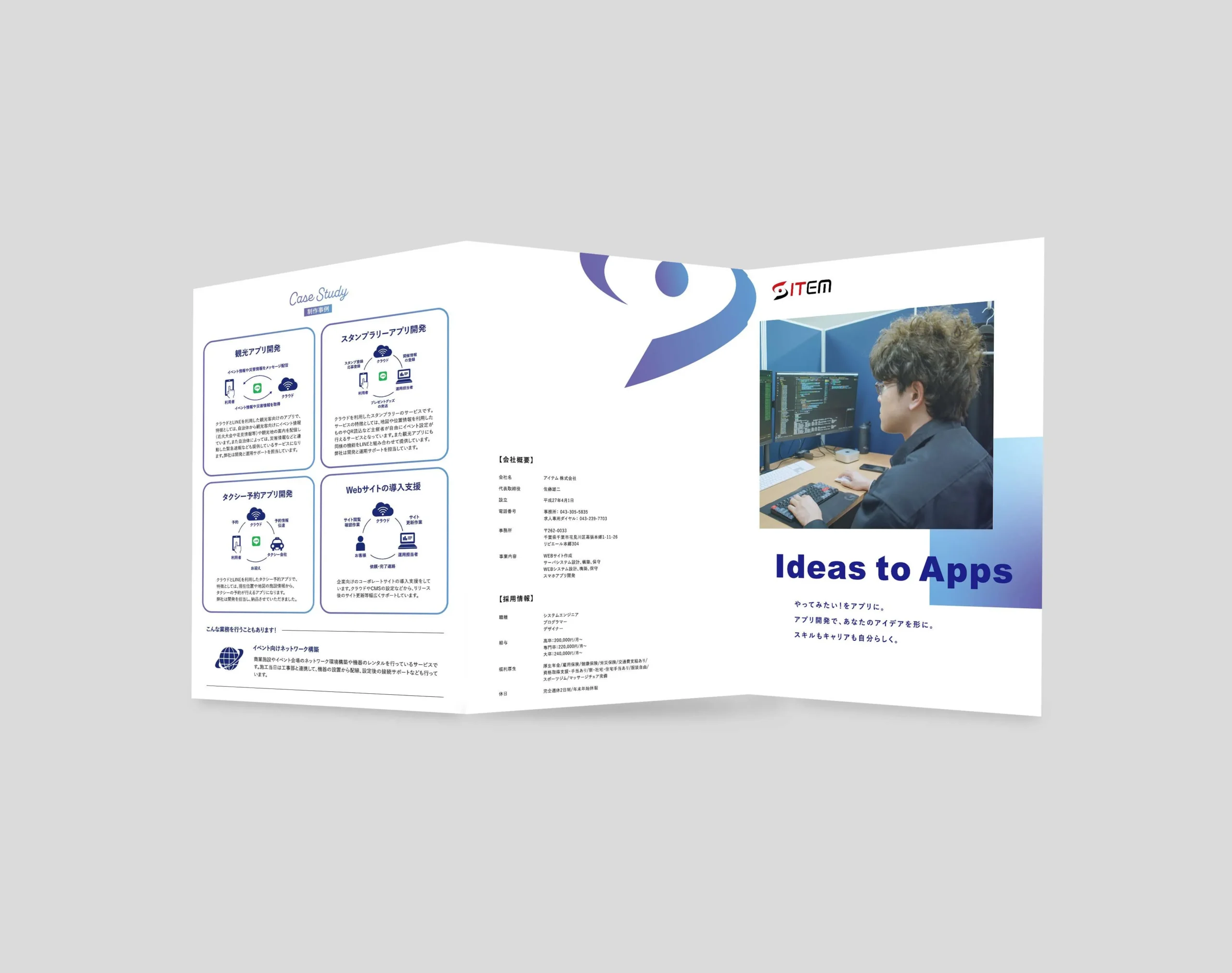 アプリ開発事業を展開する企業の大学生向け採用パンフレットを企画・制作。