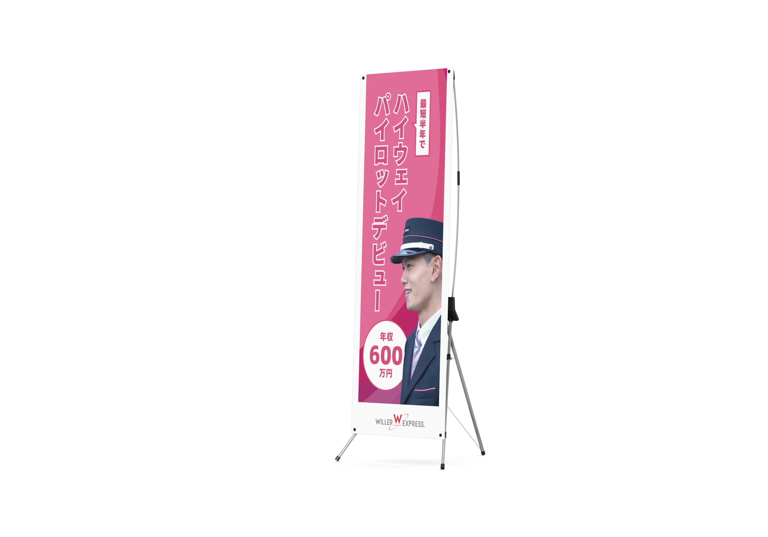 ・タペストリー・のぼりともに、大きなキャッチコピーとビジュアル中心のデザインを採用