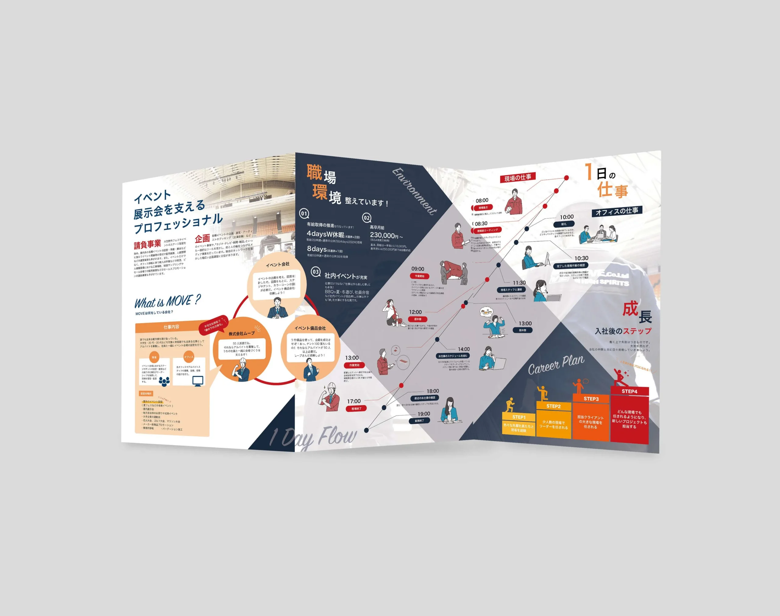 イベント設営事業を展開する企業の高校生向け採用パンフレットを企画からデザインまで制作。