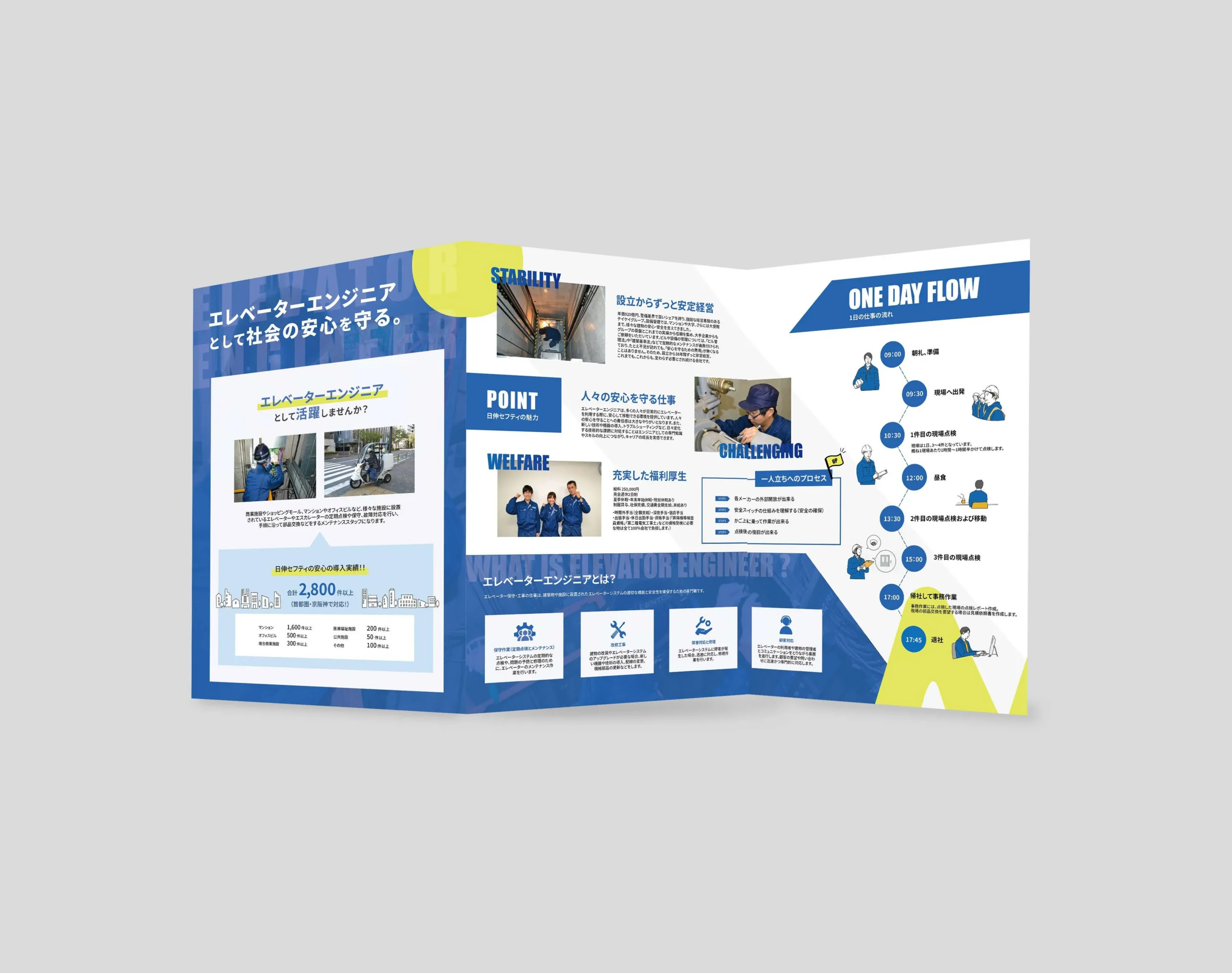 エレベーター保守業務を行う企業の高校生向け採用パンフレットを制作。
